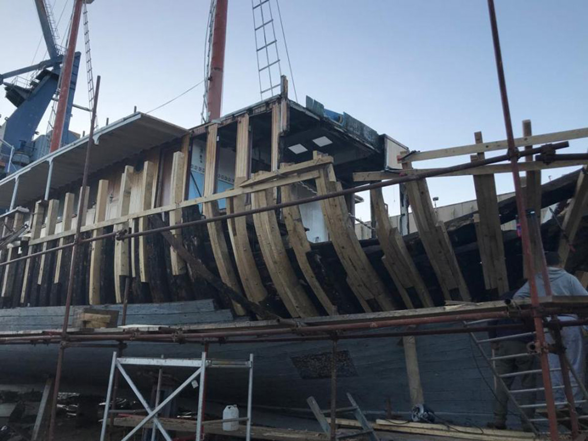 Complete refurbishment (ship's hull and deck) was done during 2020/2024. Replaced at least 80% of all wooden parts (see images).
